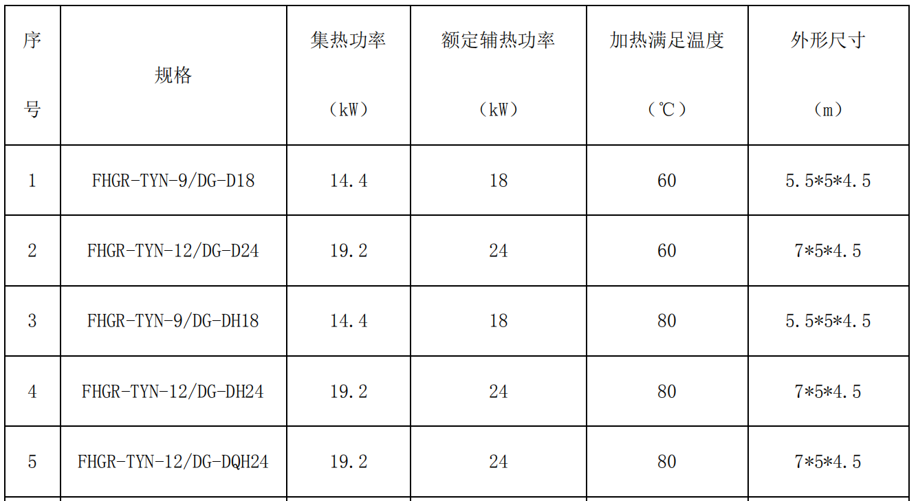 0546-7786168單罐光熱加熱裝置系列參數(shù)表